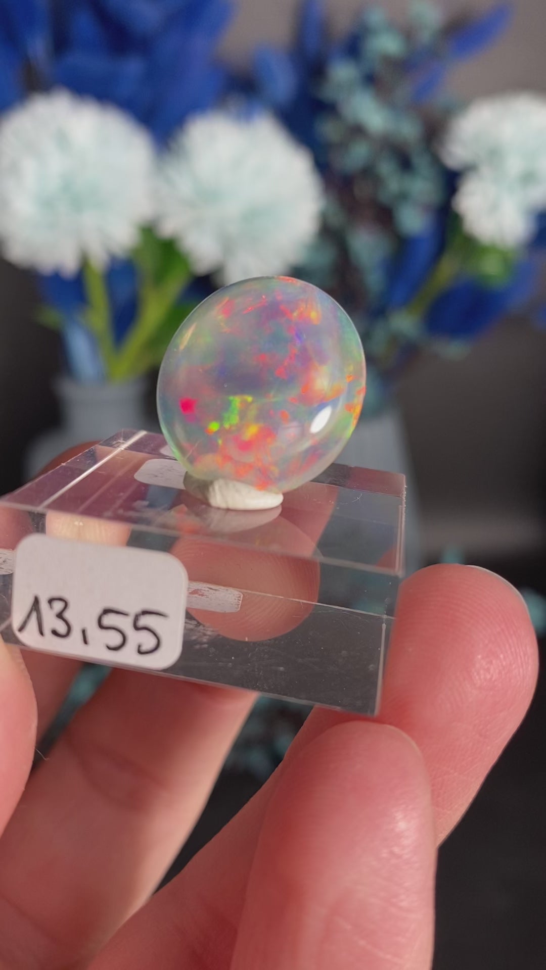 Es handelt sich hierbei um einen Opal mit einem polygonalen Muster, welches an eine Bienenwabe erinnert. Dieses Muster ist nur aus der Welo-Region in Äthiopien bekannt und besonders begehrt. Der Sockel ist inklusive und hat 3x3cm. Der Opal hat 13,55 Karat.