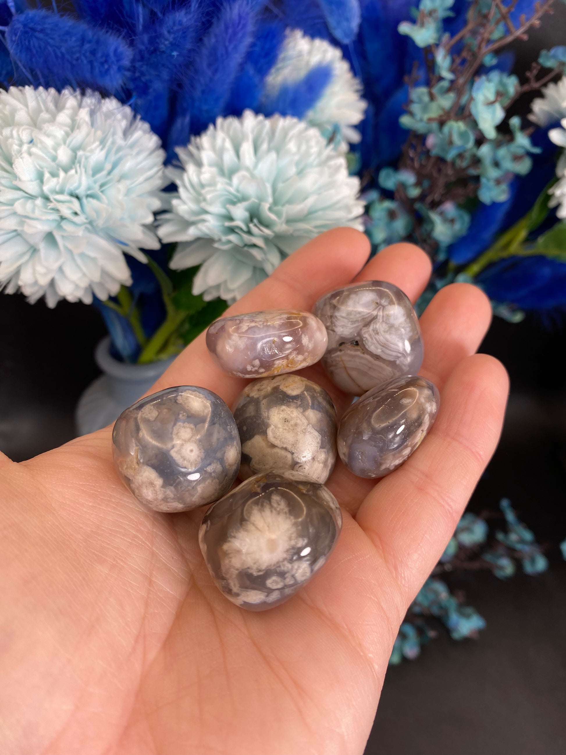 schwarzer Blumenachat Trommelstein