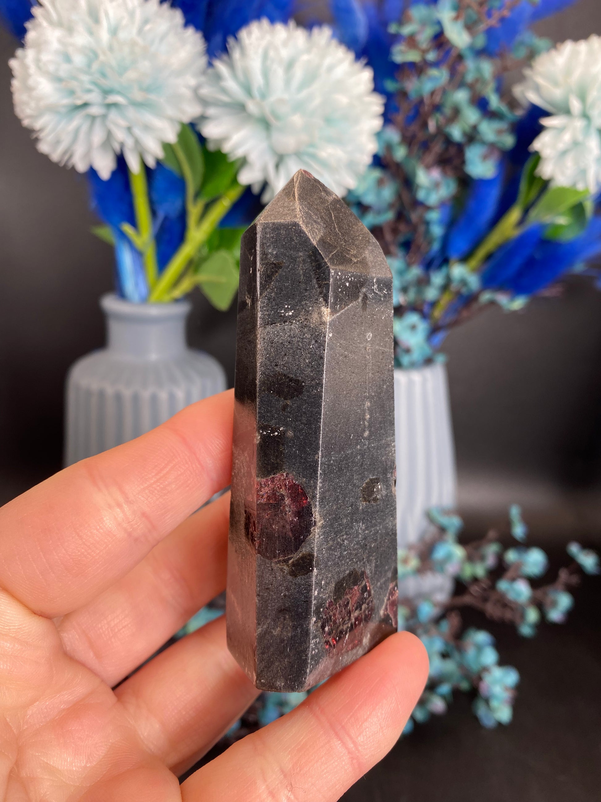 Turm aus Granat mit Staurolith (I31)