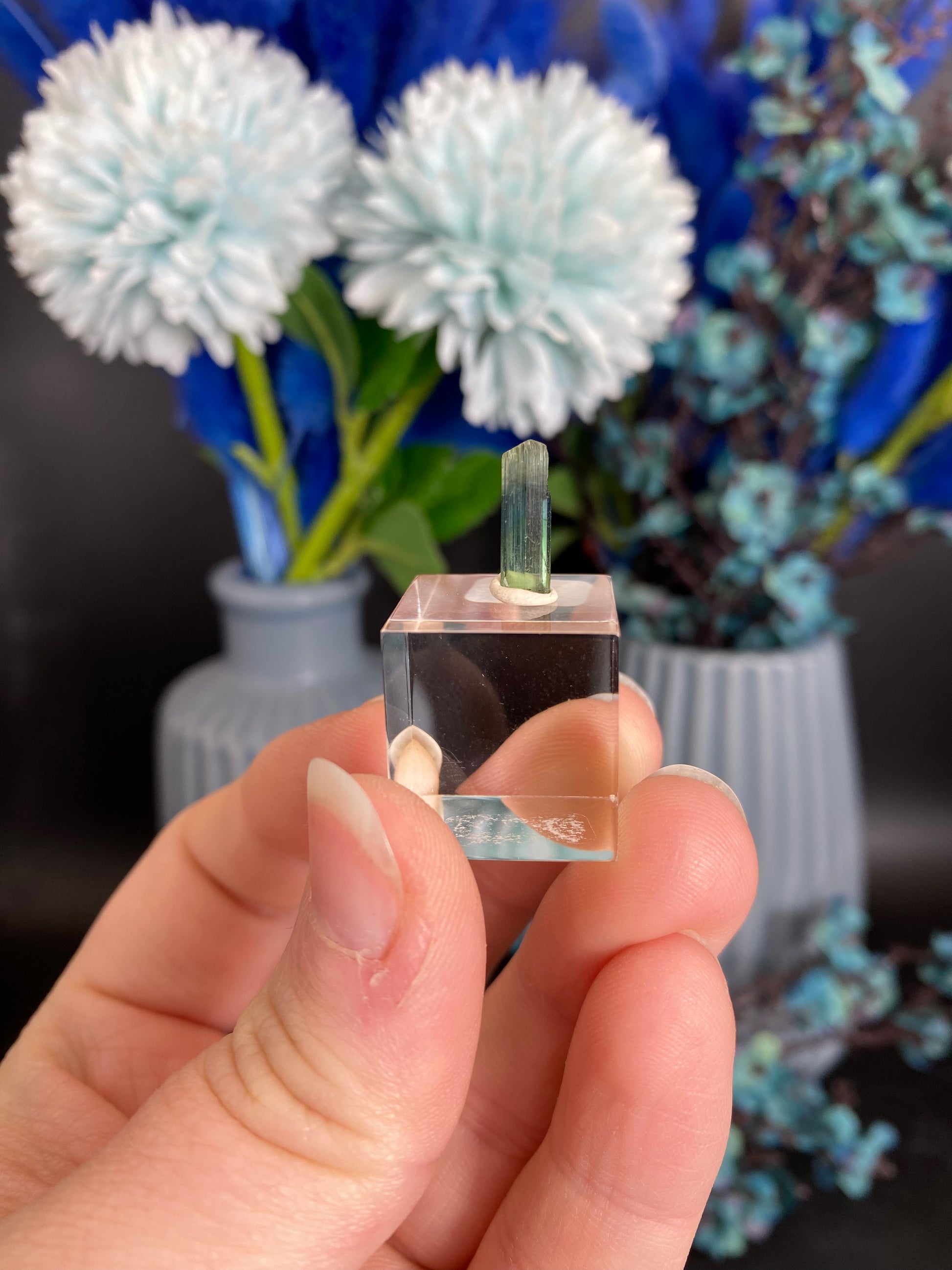 Beschädigung anderer Materialien: Manche Minerale sind härter als beispielsweise Glas und können Oberflächen zerkratzen. Bitte informieren Sie sich über die Minerale und Möbel, auf die Sie sie stellen wollen.