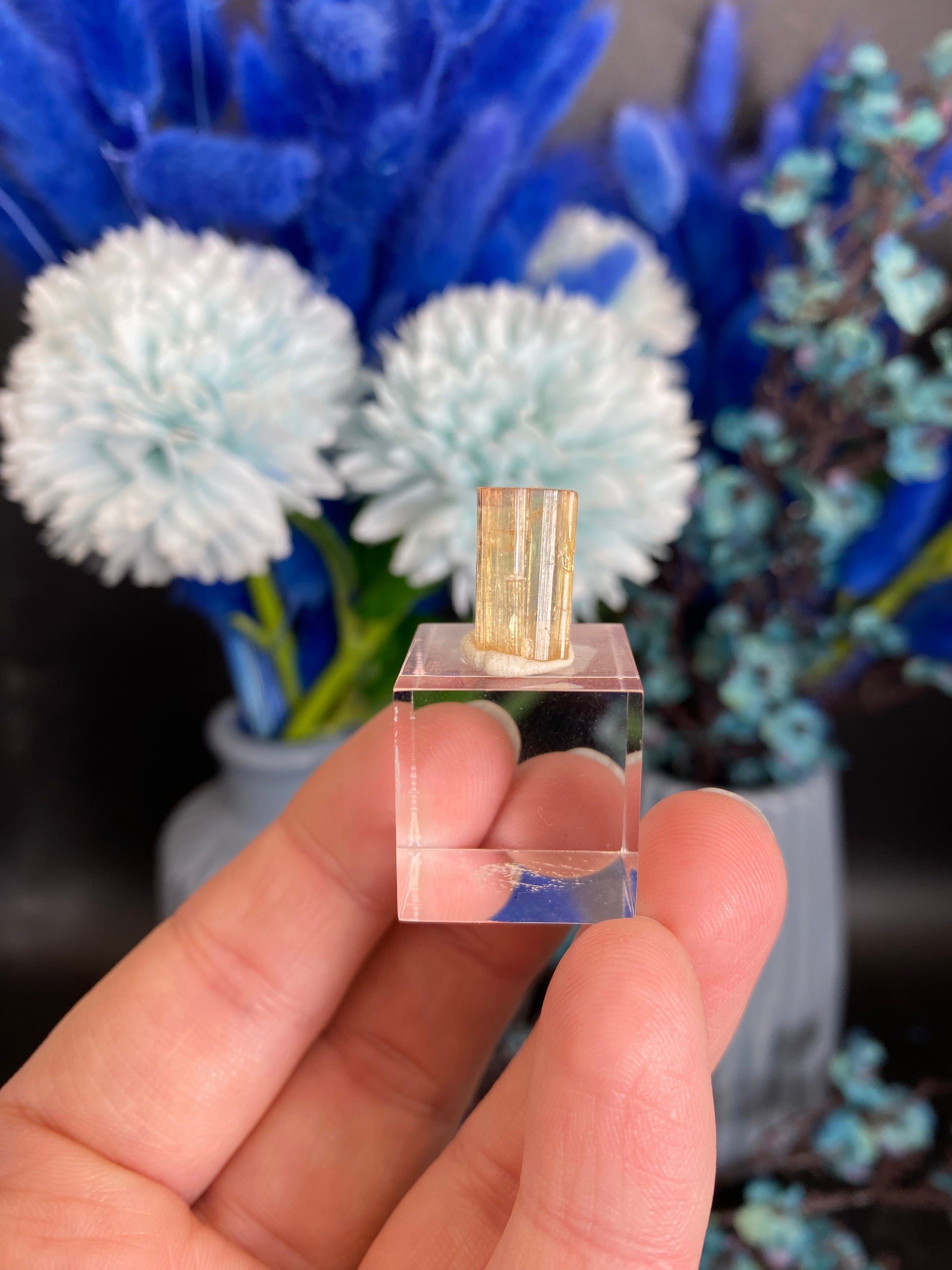 Beschädigung anderer Materialien: Manche Minerale sind härter als beispielsweise Glas und können Oberflächen zerkratzen. Bitte informieren Sie sich über die Minerale und Möbel, auf die Sie sie stellen wollen.