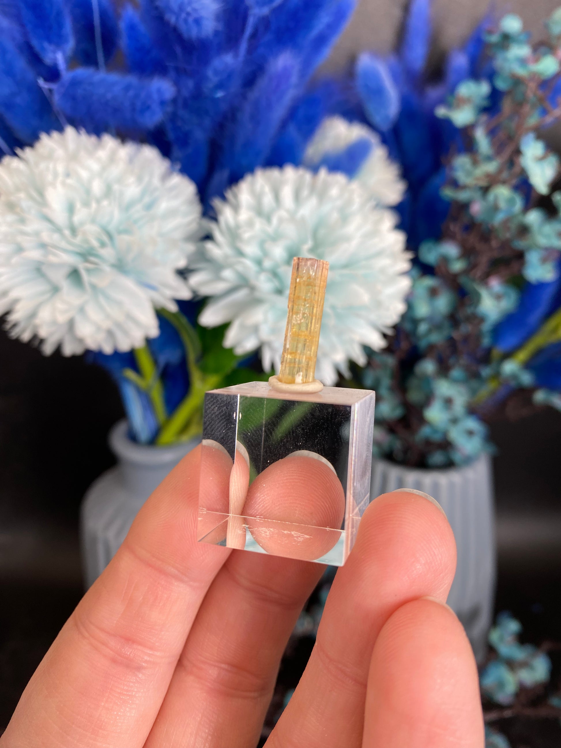 Beschädigung anderer Materialien: Manche Minerale sind härter als beispielsweise Glas und können Oberflächen zerkratzen. Bitte informieren Sie sich über die Minerale und Möbel, auf die Sie sie stellen wollen.